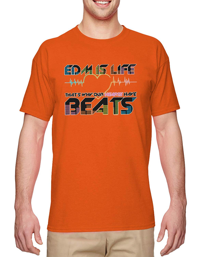 EDM is Life That's Why Our Hearts Beat Music Men's Orange T-Shirt