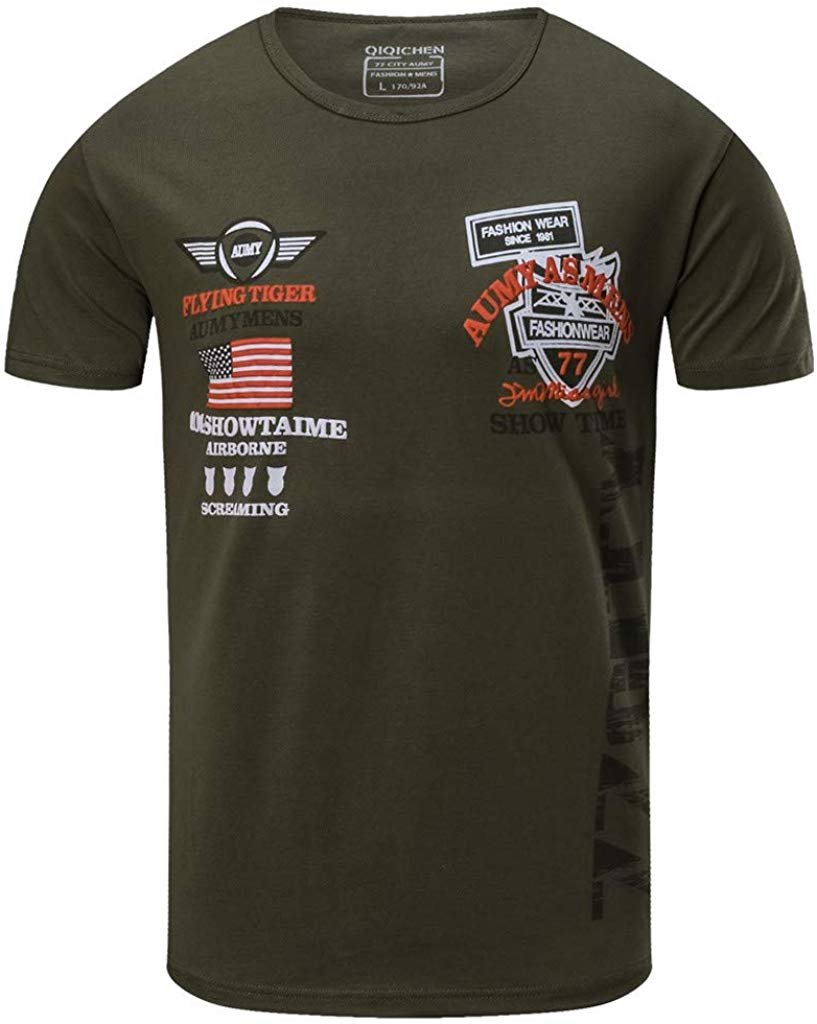 77Cityfor Men Spring Summer New Casual Fashion Pattern Printing O-Neck Short Sleeve Tops Green T-Shirt