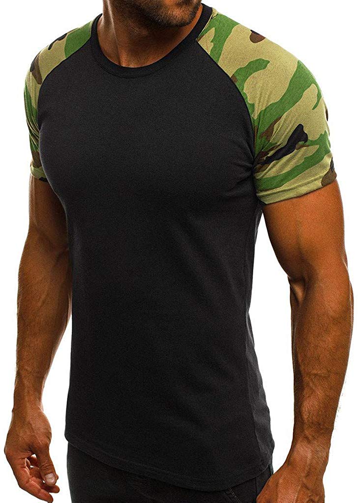 Fashion Men's Camouflage Printed Short Sleeve Patchwork Summer Casual by HimTak Black T-Shirt